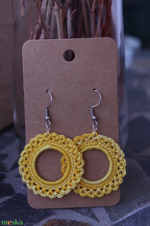 "Bazsarózsa" horgolt fülbevaló (sárga színátmenetes)