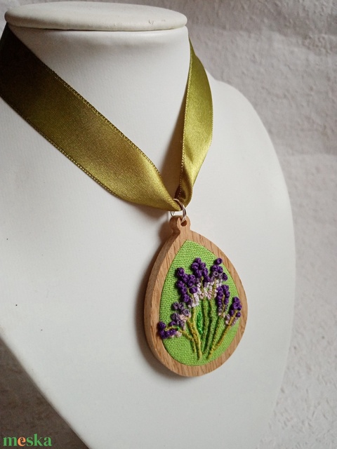 Hímzett 3d hatású levendula virág, hímzett ékszer, hímzett nyaklánc, modern hímzés, brazil hímzés