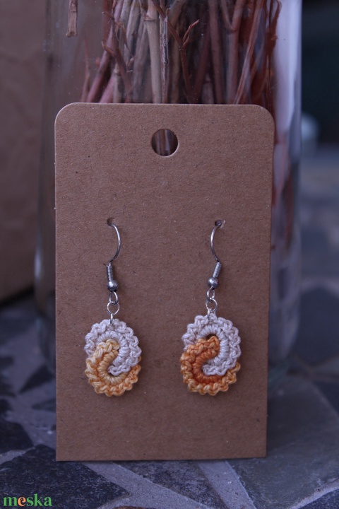 "Áramló" horgolt fülbevaló (bézs-narancssárga színátmenetes)