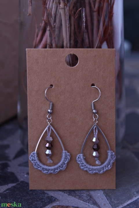 "Cseppentő" horgolt fülbevaló (szürkés kék)