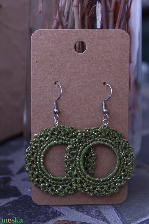 "Bazsarózsa" horgolt fülbevaló (zöld-csillogós)