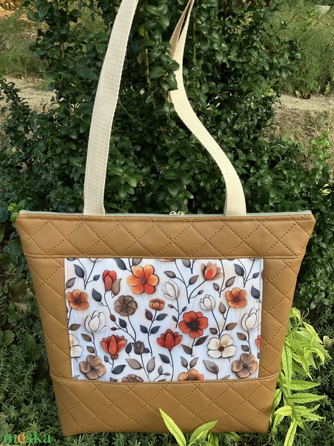 Egyedi barna virág mintás válltáska