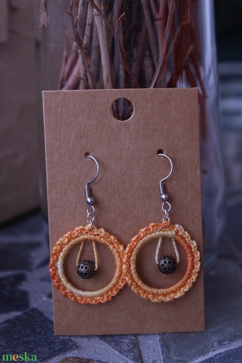 "Kerekítő" horgolt fülbevaló (narancssárga színátmenetes)