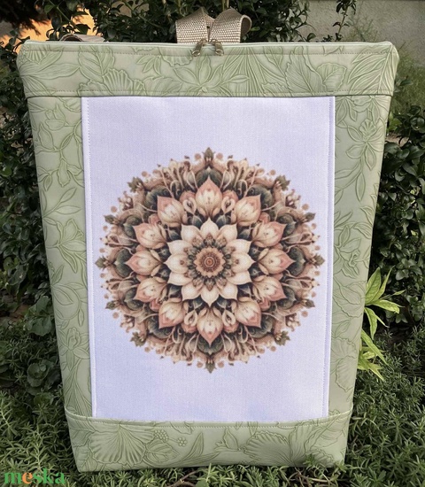 Egyedi zöld mandala mintás műbőr hátitáska