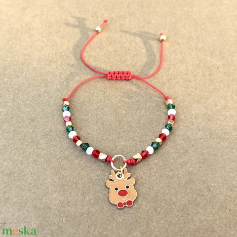 Karácsonyi rénszarvas csomózott makramé charm karkötő 5666520