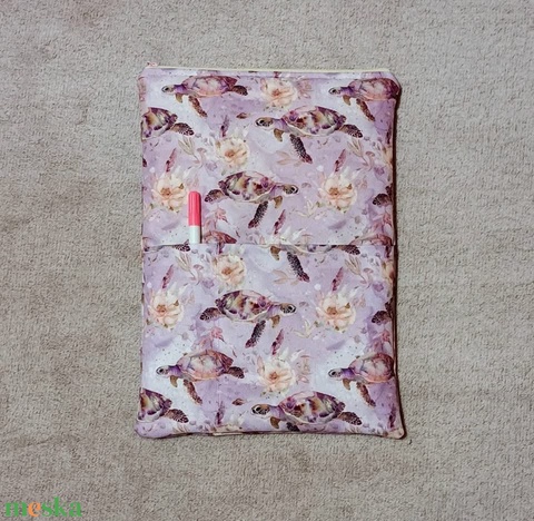 Egyedi lila teknős mintás könyvtok/ tablet tok