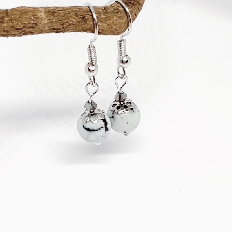 Lógós fülbevaló fekete-fehér ásvány gyönggyel