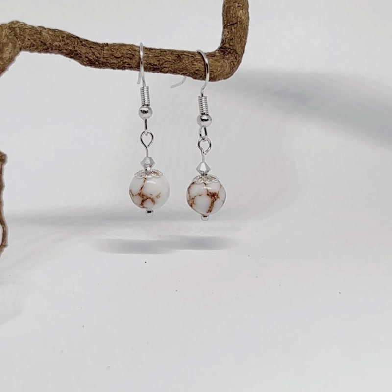 Lógós fülbevaló fehér-arany márványos gyönggyel