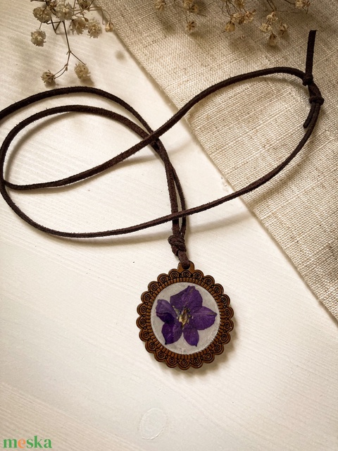 - Anyaga: műgyanta, fa, préselt virág, bőr