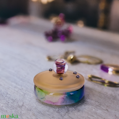 Galaxis ékszertartó üvegszelence, üvegöntéssel készült egyedi darab
