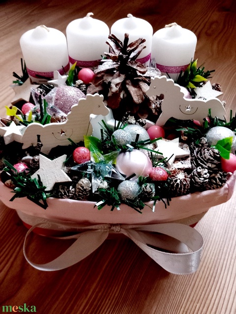 HINTALOVAK adventi asztaldísz, karácsonyi asztaldísz, karácsonyi koszorú KÉSZTERMÉK