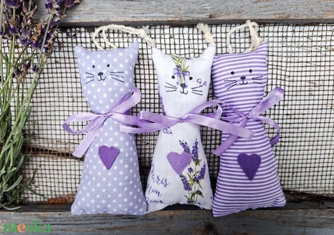 Levendula -lila -cicák párban, illatzsákok, illatpárnák- 2db, levendulavirággal töltve