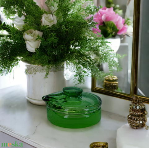 Levélke ékszertartó üvegszelence, üvegöntéssel készült egyedi darab
