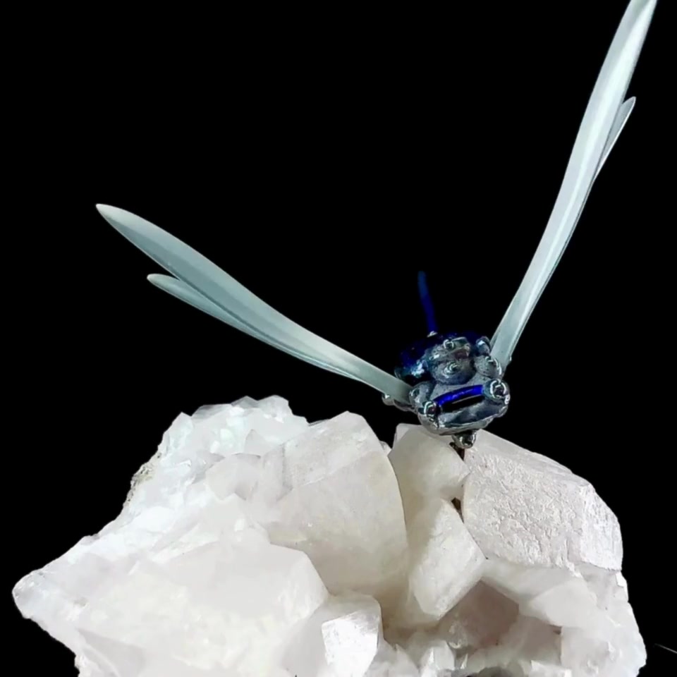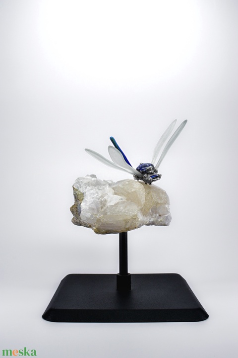 Kék szitakötő hegyikristályon dekoráció, műalkotás, dísztárgy