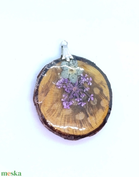 - Anyaga: gyanta, természetes anyagok, virágok, fakorong, toll