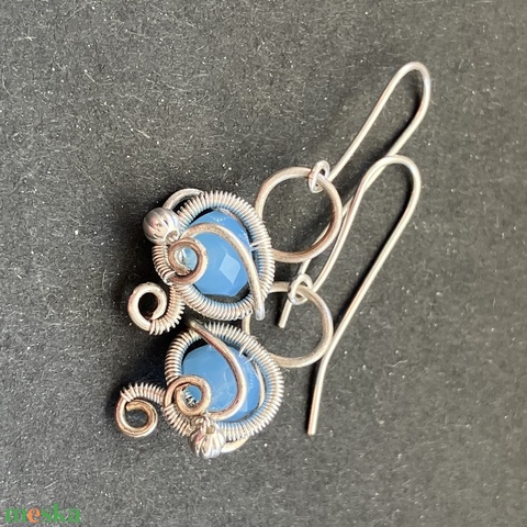 ezüstözött rézdrót, kék üveggyöngy, fémgyöngy
