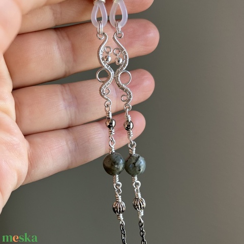 - Anyaga: labradorit ásvány, fémgyöngyök, ezüstözött rézdrót, szilikon végék