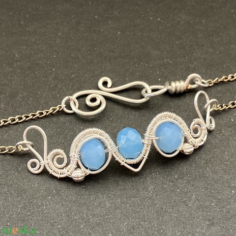 ezüstözött rézdrót, fémgyöngy, üveggyöngy, lánc