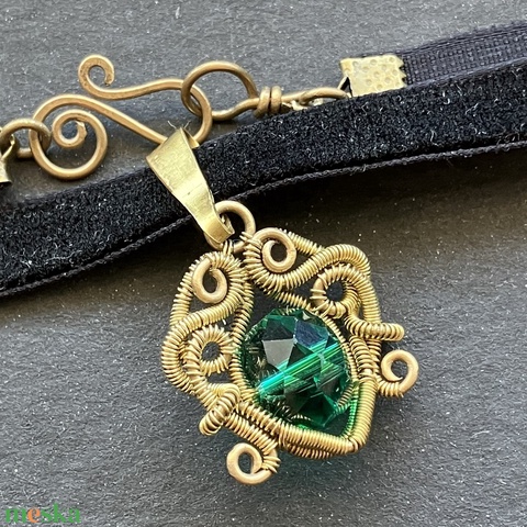 - Anyaga: sárgaréz drót, üveggyöngy, bársonyszalag