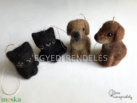 Egyedi rendelés - tűnemezelt macskás és kutyás karácsonyfadíszek