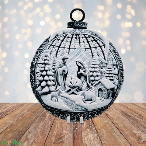 A karácsony legmélyebb pillanata a csend, amikor megszületik a remény. A Betlehemi Csönd dísz ezt a pillanatot örökíti meg: Mária, József és a kis Jézus a jászolban, állatokkal és fenyőkkel körülvéve – mindezt hóval borított hegyvidéki háttér és kupolaszerű védelmező forma öleli körül. A Hueforge technikával készült 3D nyomtatás nem igényel festést – a fény és árnyék játéka kelti életre a jelenetet.
