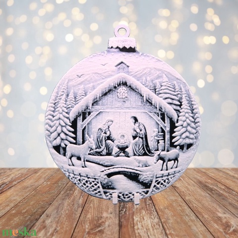 Amikor megszületett a Megváltó, csend és béke ölelte körül a világot. A Megváltó Születése dísz ezt a pillanatot örökíti meg – Mária, József és a kis Jézus jászolban, hóval borított istállóban, szeretetteljes pillanatban. A háttérben fenyőfák, hegyek és egy kis híd teszi teljessé a jelenetet. A Hueforge technikával készült 3D nyomtatás festés nélkül is elképesztő részletgazdagságot ad, a fény és árnyék játéka kelti életre a jelenetet.