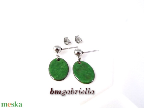 Zöld bedugós lógós tűzzománc fülbevaló orvosi fém beszúróval