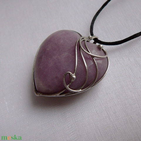 A medál tiffany technikával készült lepidolit és ólommentes, ezüsttartalmú ón felhasználásával. A díszítés szintén saját készítésű, nem tartalmaz gyári elemeket.A fémrészt óezüstre patináztam és lelakkoztam, hogy sokáig szép maradjon.