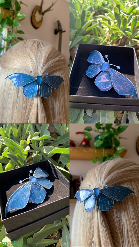 Kék pillangós epoxy hajcsat