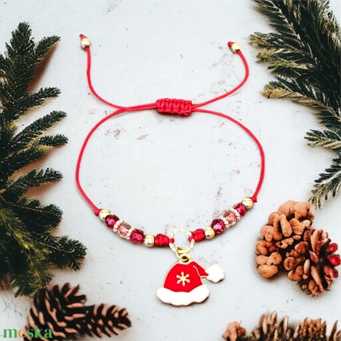 Karácsonyi mikulás sapkás csomózott makramé charm karkötő 5667352