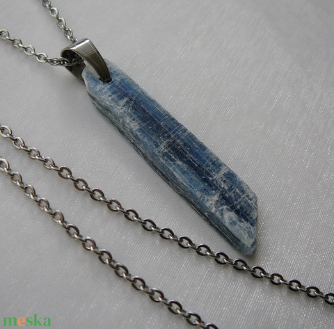 Orvosi acél szerelékre akasztottam ezt a különlegesen szép nyers kianit medált.