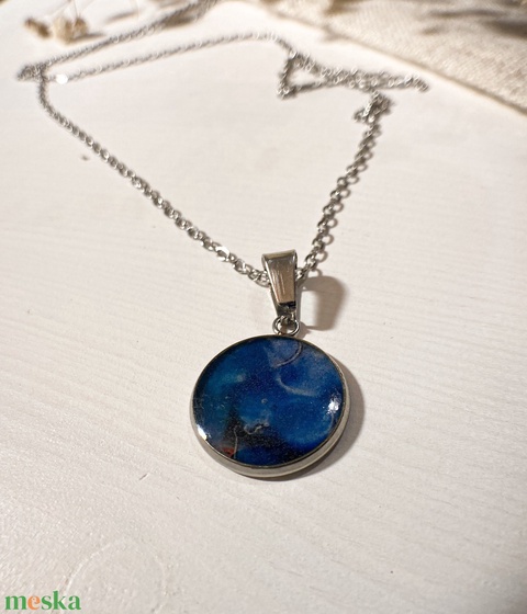 Medálos nyaklánc - Műgyanta medál kék mintával