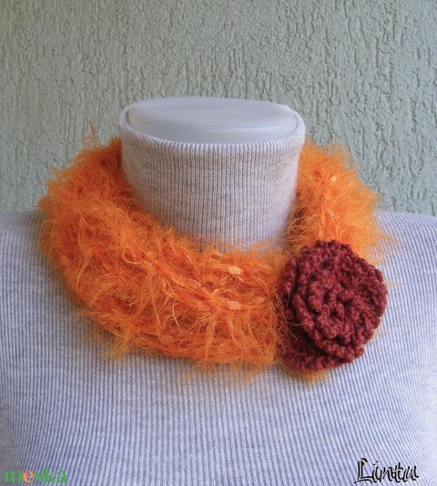 Téli horgolt nyaklánc narancssárga-barna színekben