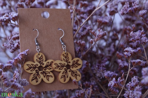 "Virágom" fából készült fülbevaló 4#