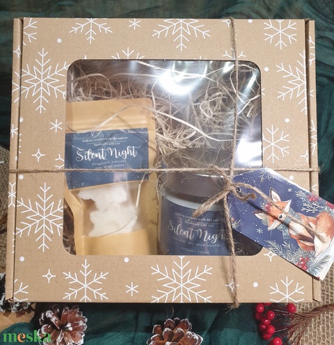 Karácsonyi ajándékdoboz, szójaviasz gyertya és illatviasz