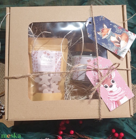 Karácsonyi ajándékdoboz, szójaviasz gyertya és illatviasz