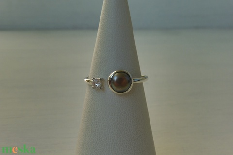 gyöngyös-cirkóniás nyitott ezüstgyűrű