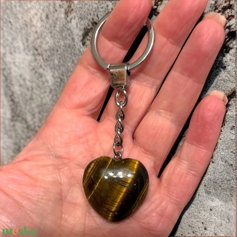 Védelem, bátorság, önbizalom Tigrisszem ásvány szív kulcstartó 5667601