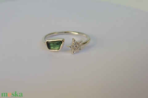 turmalinos-cirkóniás nyitott ezüstgyűrű