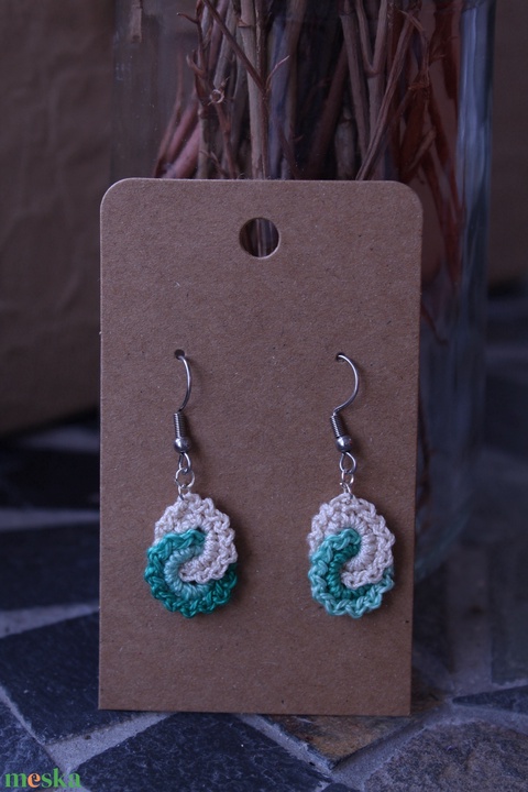 "Áramló" horgolt fülbevaló (bézs-türkizzöld színátmenetes)