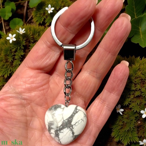 Stresszoldó, nyugtató, belső béke Howlit ásvány szív kulcstartó 5667659