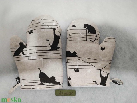 Edényfogó kesztyű , 1 pár cicák kottában rosszalkodnak