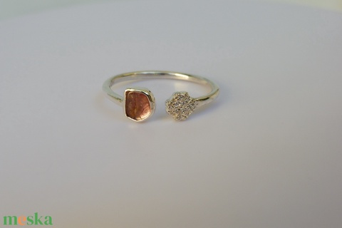 rózsaszín turmalinos, cirkóniás nyitott ezüstgyűrű