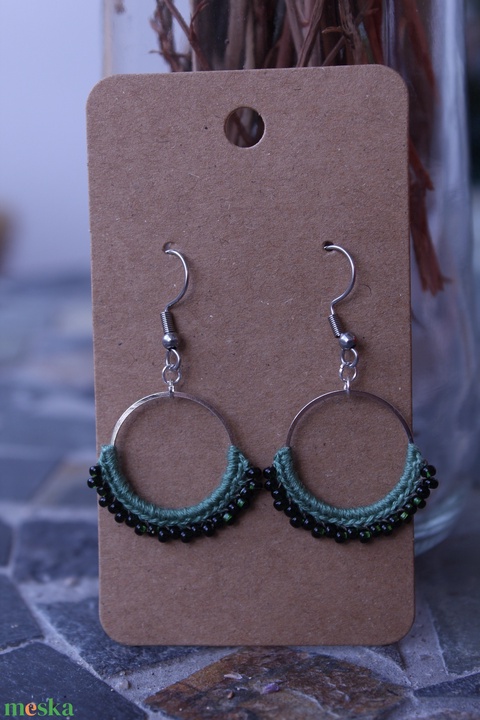"Gyöngyöző" horgolt fülbevaló (zöld)