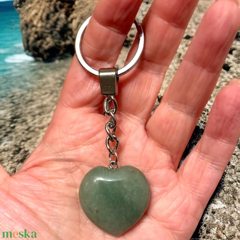 Szerencse, nyugalom, önbizalom, pozitív energia zöld aventurin ásvány szív kulcstartó 5667702