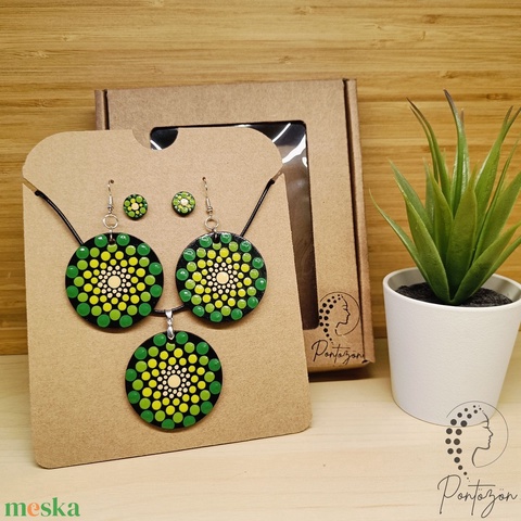 Pontozott ékszerszett - zöld és sárga színekkel