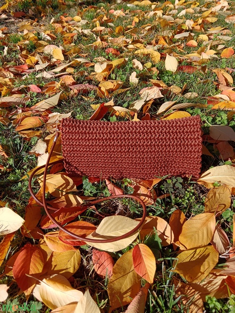 Napsugár – kézzel horgolt kézműves női táska, vállon és keresztben hordható (barna)