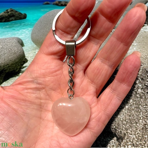 Szeretet, gyengédség, harmónia, önbizalom rózsakvarc ásvány szív kulcstartó 5667780