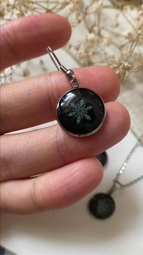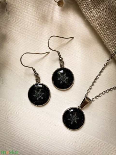 Medálos nyaklánc fülbevalóval - Hópelyhes ékszerszett