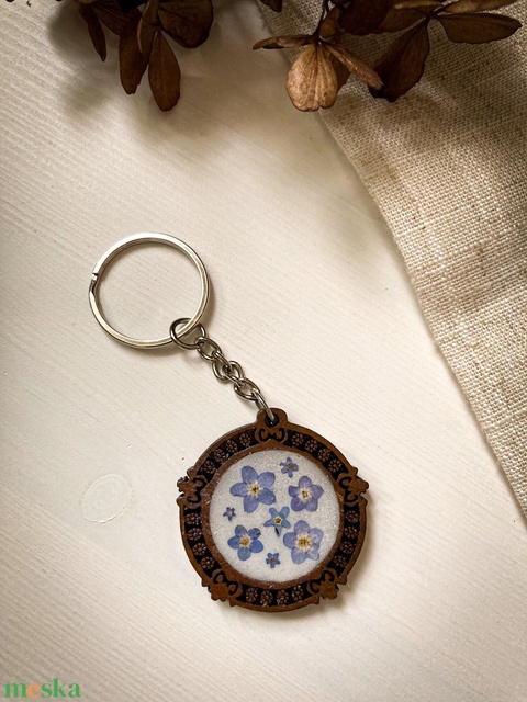 Kulcstartó - Virággal díszített kerek fa kulcstartó